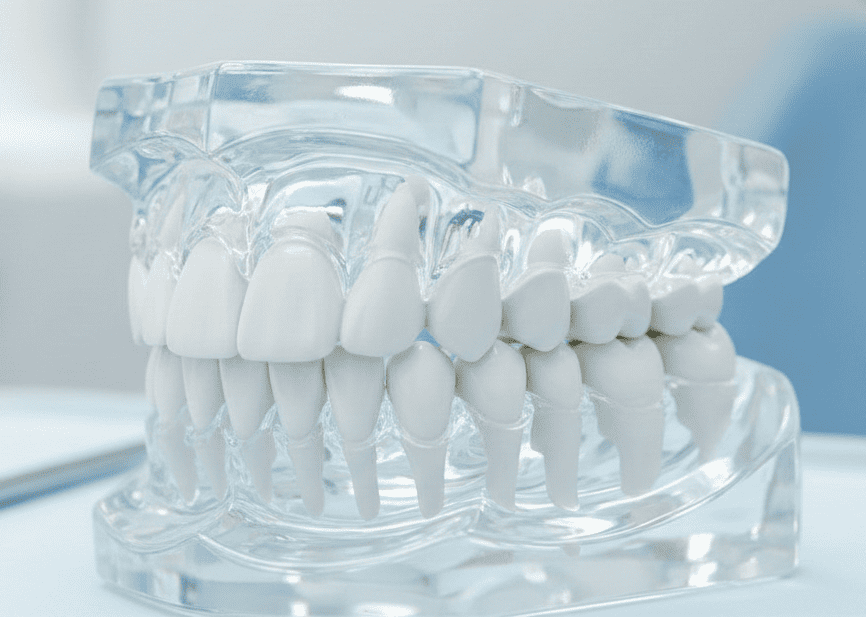 A higiene deve ser feita diariamente, como nos dentes naturais, com escovação e fio dental apropriado. Consultas periódicas são importantes para ajustes e maior longevidade.